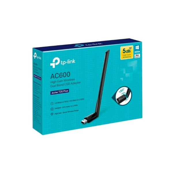 adaptador red usb tp-link archer t2u plus ac600 wifi dual band alta ganancia señal pc notebook internet