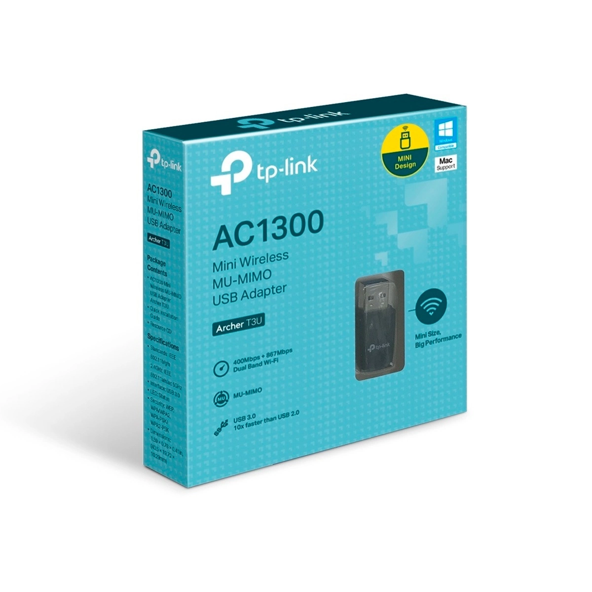 adaptador red usb tp-link archer t3u ac1300 wifi dual band señal inalámbrica pc notebook mu-mimo