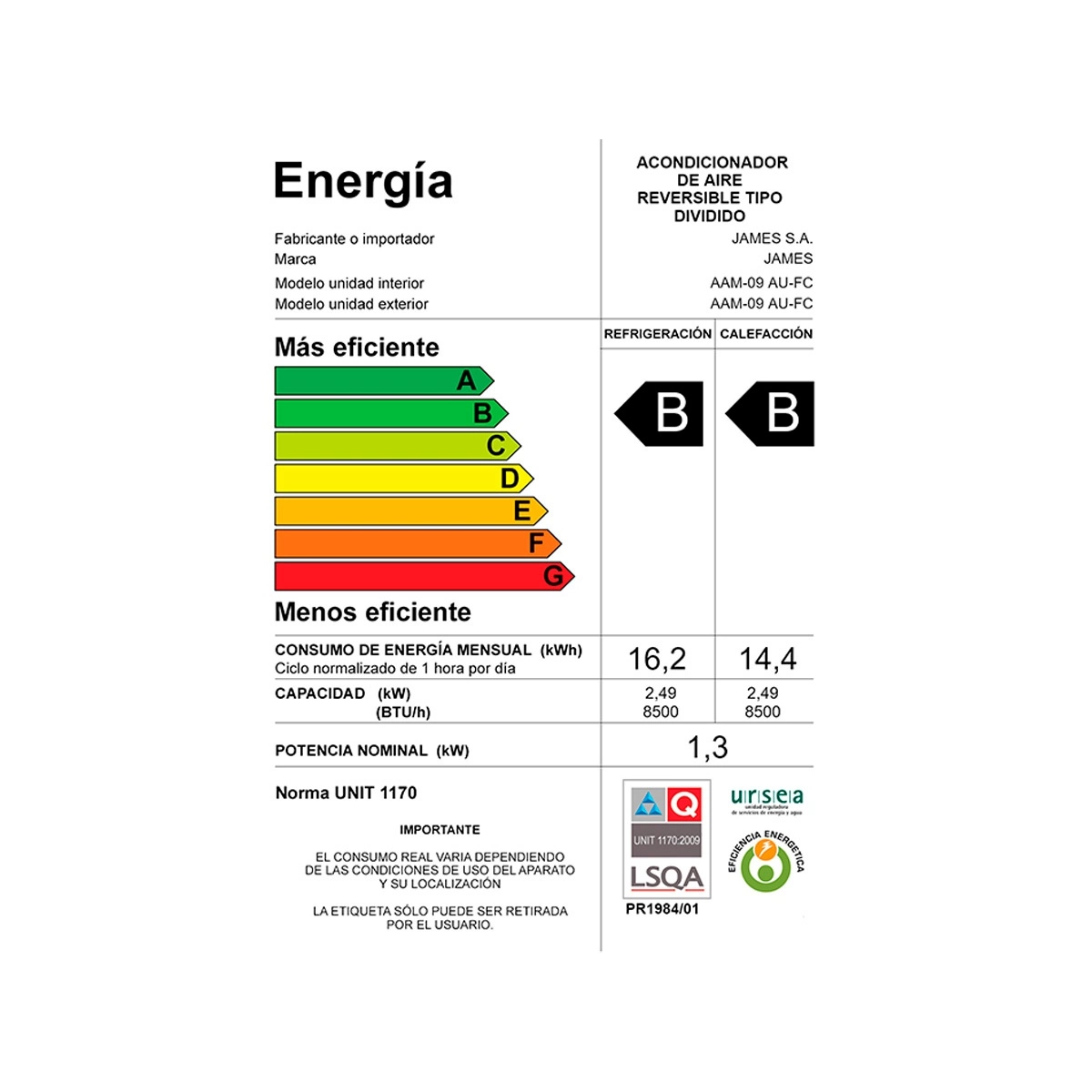 aire acondicionado james 9000 btu inverter aam 09 au fc split frio calor wifi bajo consumo control remoto hogar