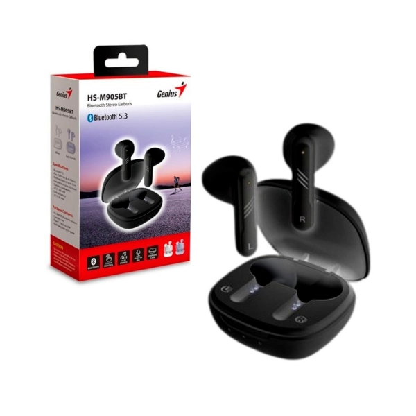 auriculares genius hs-m905bt inalambricos bluetooth estuche carga microfono manos libres musica llamadas compacto usb-c
