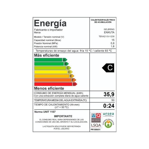 calefón enxuta 15 litros tanque acero eléctrico compacto baño cocina enxuta 15l ahorro espacio termostato regulable