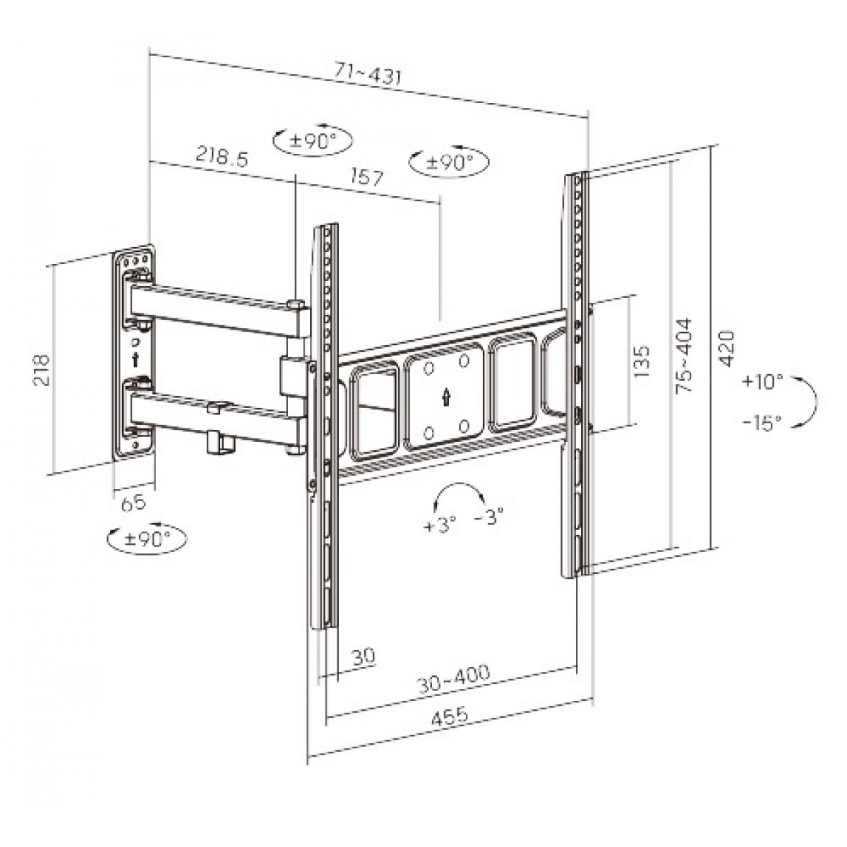 Compatible con medidas de Vesa: 75x75, 100x100, 100x150, 150x100, 100x200, 200x100, 150x150, 200x200, 300x200, 400x200, 300x300, 400x300 y 400x400