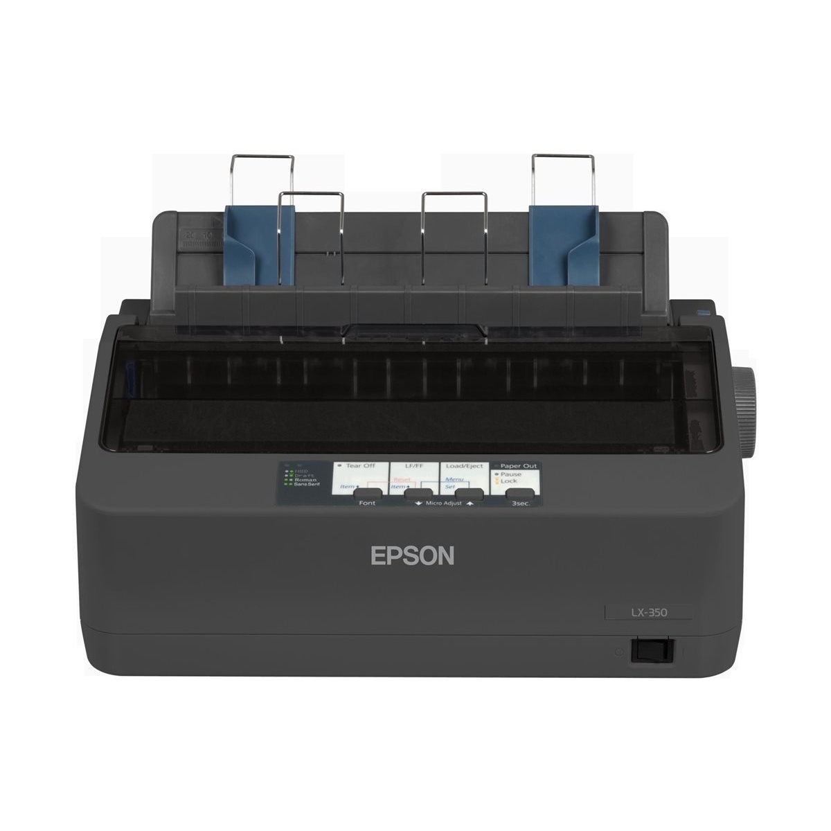 Impresora matricial Epson LX-350 en blanco y negro, ideal para entornos comerciales y administrativos que requieren impresión continua de formularios, facturas y remitos. Ofrece alta confiabilidad, bajo costo operativo y excelente rendimiento para uso intensivo en oficinas y puntos de venta.