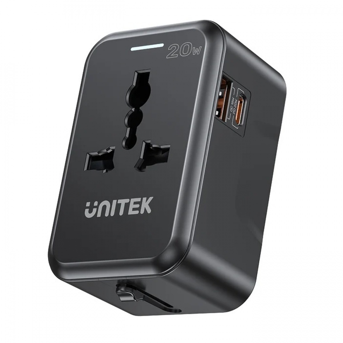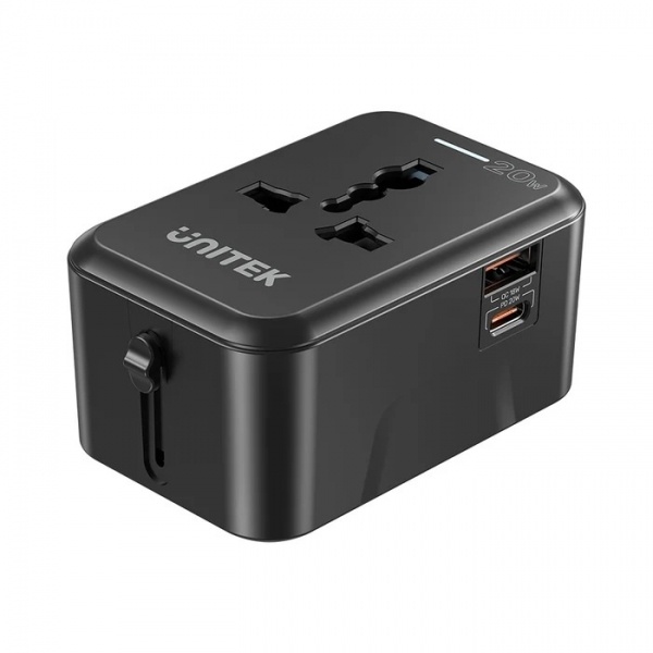 Cargador Universal Unitek 20W es un adaptador compacto ideal para viajes, con 1 puerto USB-C Power Delivery (PD) de hasta 20W y 1 puerto USB-A Quick Charge 3.0 de hasta 18W. Permite cargar dos dispositivos simultáneamente y es compatible con enchufes de más de 200 países. Su diseño robusto y portátil lo hace perfecto para viajeros y estudiantes.