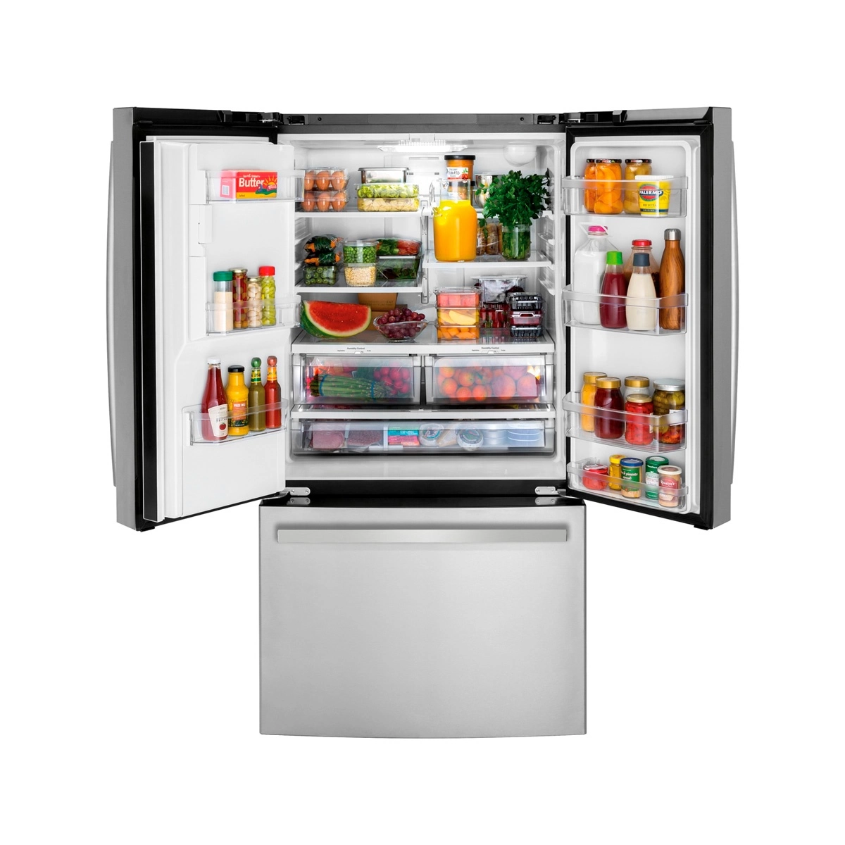 side by side general electric gfo26jspffs 646 litros acero inoxidable dispenser agua hielo tecinverter frio seco heladera grande premium refrigeracion cocina