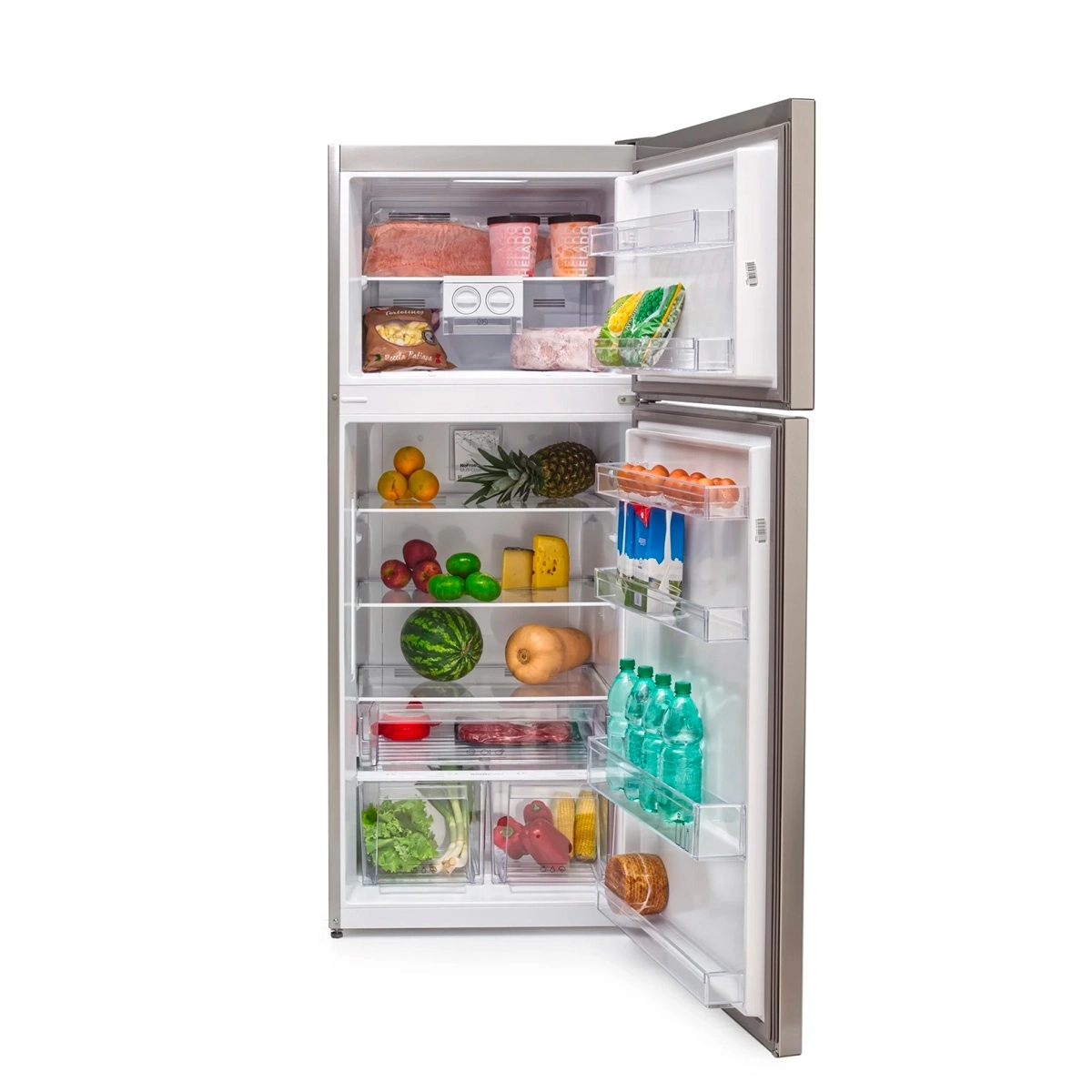 El diseño en color blanco con puertas reversibles permite integrar la heladera fácilmente en diferentes estilos de cocina o espacios hogareños.
