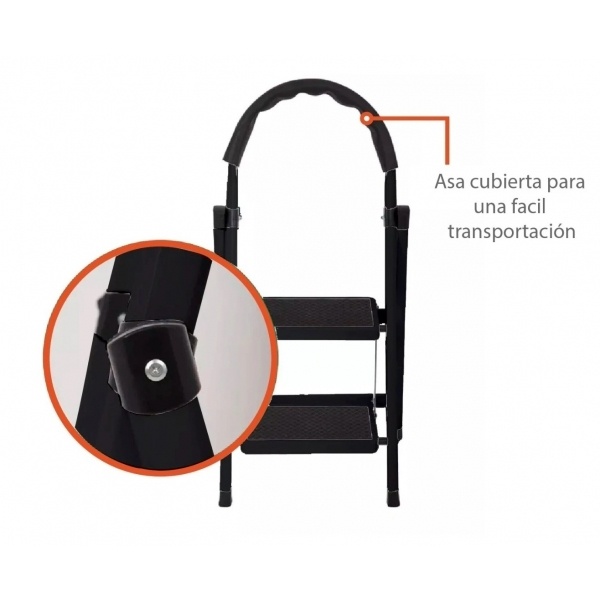 escalera 2 escalones negra base antideslizante metal hogar oficina compacta resistente tareas domesticas