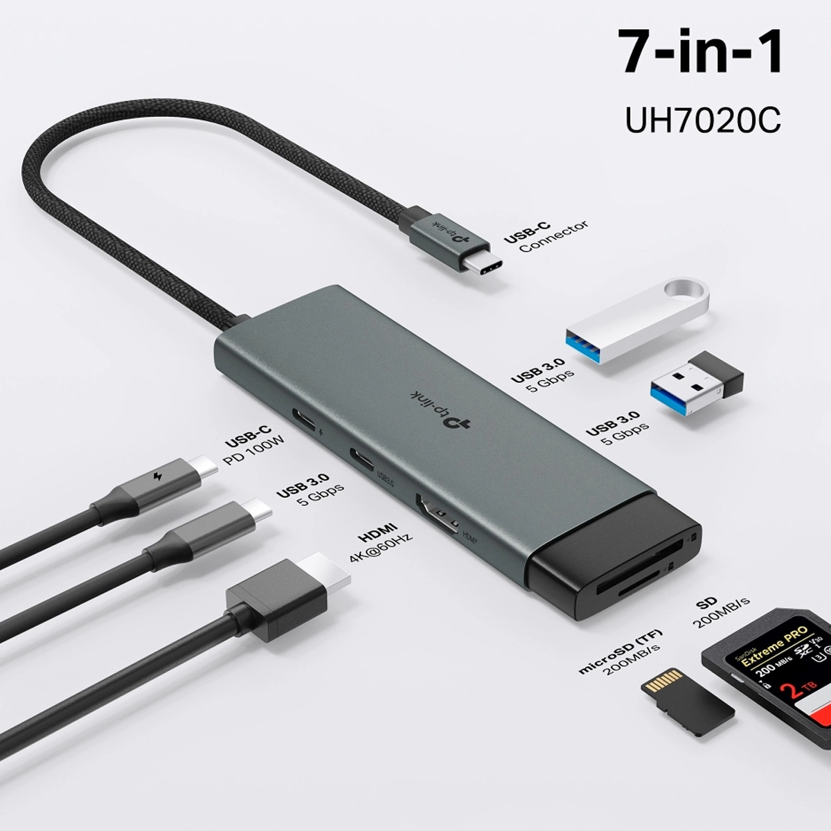 hub tp-link uh7020c usb-c hdmi 4k usb 3.0 microsd sd adaptador puertos laptop notebook oficina uruguay