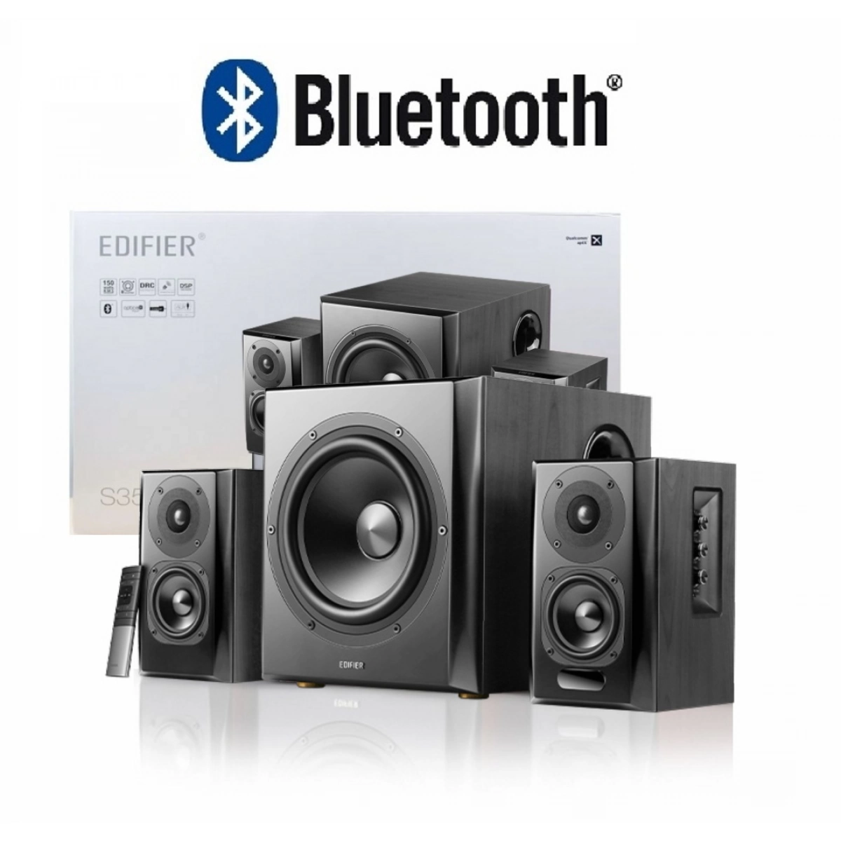 parlantes edifier s351db 2.1 150w bluetooth madera audio potente cine en casa música control remoto