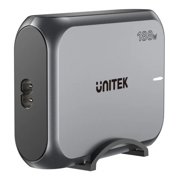 El Cargador GaN Unitek de escritorio 188W ofrece carga ultrarrápida y simultánea para múltiples dispositivos. Con 3 puertos USB-C y 2 USB-A, soporta carga rápida para laptops, tablets y smartphones, incluyendo MacBook Pro. Su tecnología GaN garantiza eficiencia y menor calentamiento.