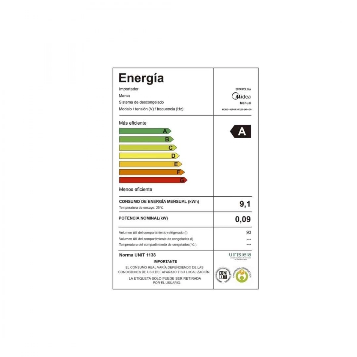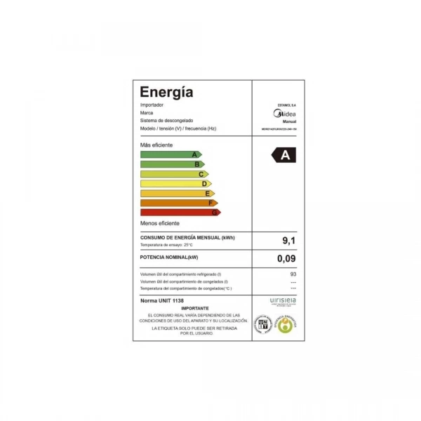midea mdrd142fgr30 frigobar 93l negro compacto