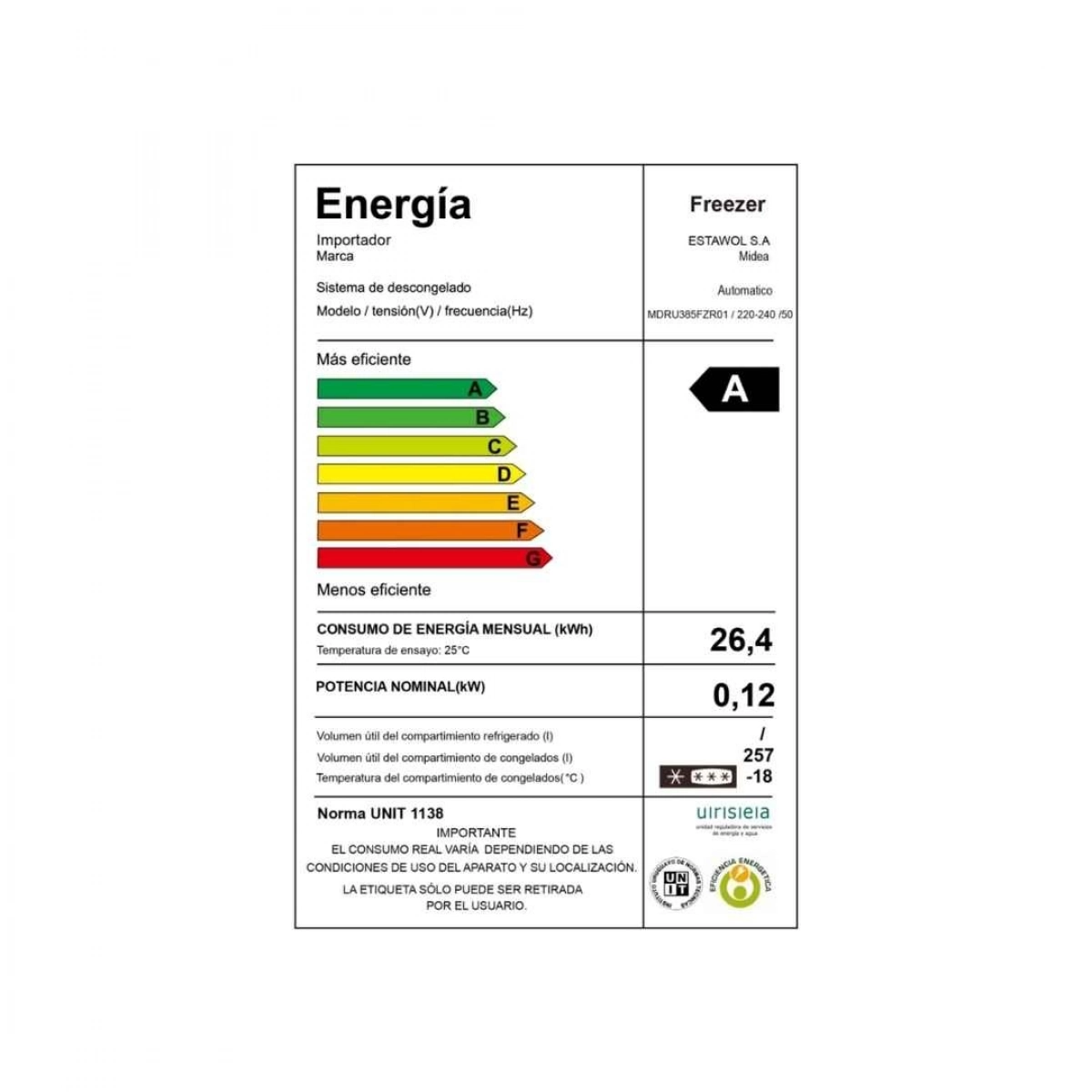 midea mdru385fzr01 freezer vertical 257l dual frio seco frizer frezer